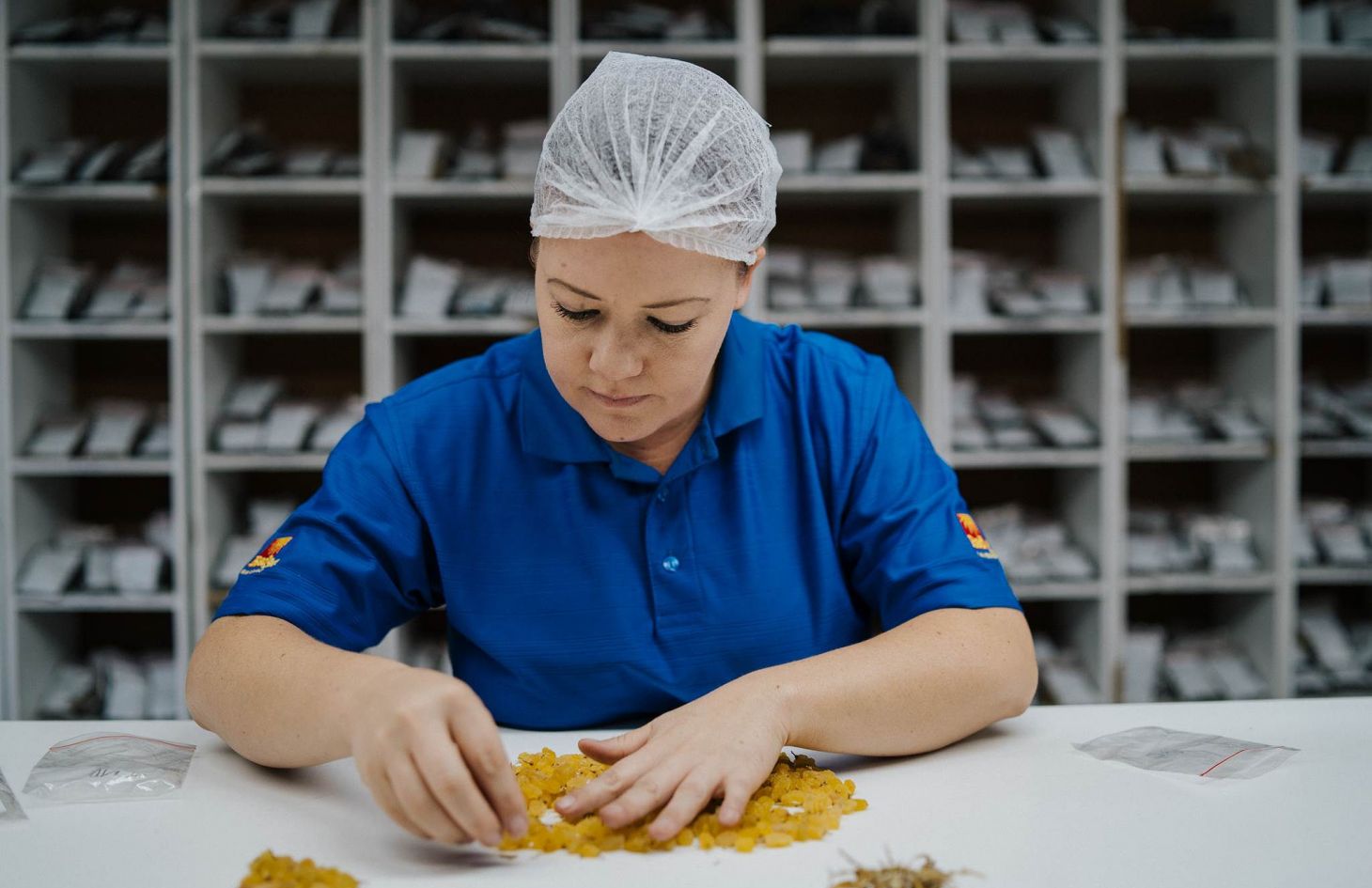 A secondary more thorough cleaning process is done. The final cleaning is done by hand and the Raisins then get screened for any other irregularities. Oil is also added in this phase.
